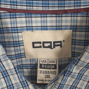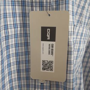 Introducing the new CQR Shirt in Men's XL size from the Tactical Series. This button-up shirt features a stylish plaid pattern in blue, white, and black colors, perfect for outdoor occasions. The long sleeve shirt comes with a collared neckline and a button-down style for a comfortable fit.