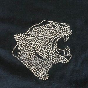 New * CUSTOM * RHINESTONE Bling PANTHER Applique BLACK s/s T-SHIRT *NCAA NFL * M