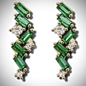 14k gold plated brass, CZ stones in Emerald Green matching the playful design on the earrings. Pretty separate but Stunning together!