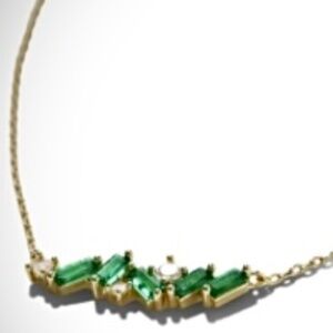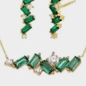 New CZ Baguette Earrings and 14k Gold Plated Necklace Combo Set Emerald Green