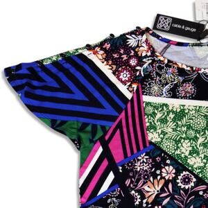 Cable & Gauge Cut Out Shoulder Flutter Sleeve Floral T-Shirt Top