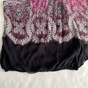 New Cache One Shoulder 100% Silk Embellished Top Paisley Print Size Small Beaded
