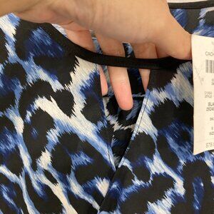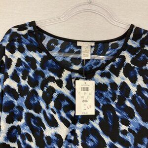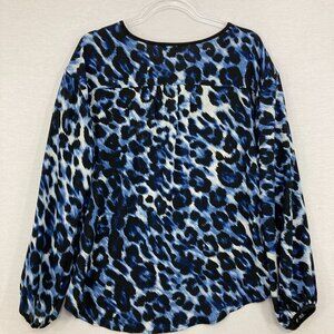 New Cache Small Black Blue Leopard Print Relaxed Flowy Long Sleeve Blouse