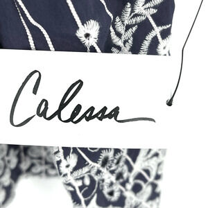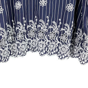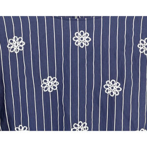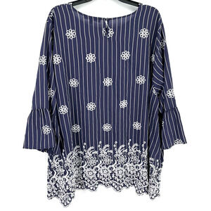 New Calessa Blue Stripe Embroidered Floral Tunic Top Shirt Size PL Petite Large