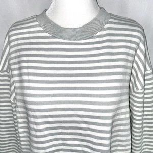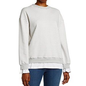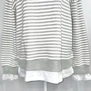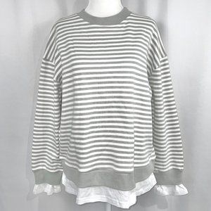 New Cali Be T-Shirt Hem Layered Stripe Crewneck Sweatshirt Grey White Size Small