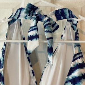 New Calia Halter Top 2X Watercolor Stripe Blue Bikini Top Plus Size Swim Summer
