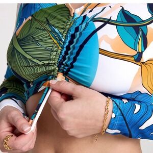 New Calia Tropical Print Bikini Set High Waist Swimsuit Long Sleeve Crop Top