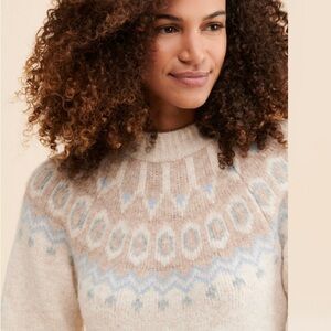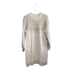 Fair isle printed sweater dress w/ puff sleeves