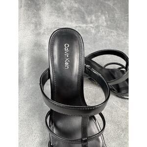 New! Calvin Klein Black Leather Strappy Heeled S Sandals Woman's Size 9