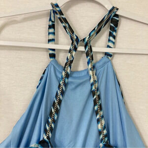 New Calvin Klein Blue Chevron Pleated Detail Evening Dress size 14