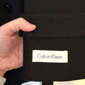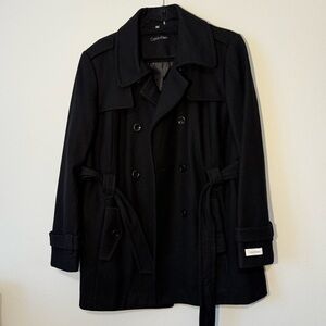New Calvin Klein Double Breasted Belted Peacoat Wool Blend Black
