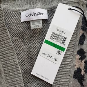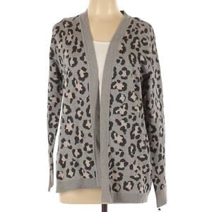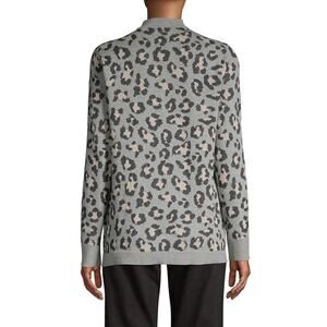 New Calvin Klein Large Open Front Cardigan Sweater Leopard Animal Print Gray L