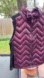 Purple and black. Gorgeous coloring. Black is mixed into the purple as well as non down areas in black have stretch. New with tags. Minor flaw as shown. Extra Large. premium down. Zip Security pocket. Pockets all zip