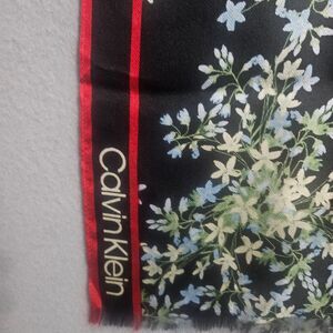 New Calvin Klein Silk Scarf 70X16 Floral Large Black Logo