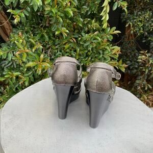 New Calvin Klein Solano Lizard Wedge Platform Sandals Silver Women’s 39 8.5