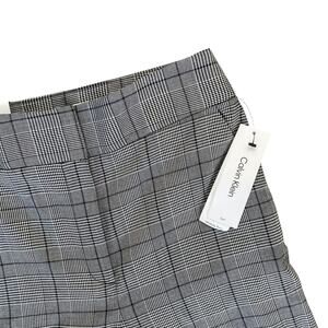 New Calvin Klein Whitney Pant Trousers Sz 8 Grey Black Plaid Pattern Wide Leg