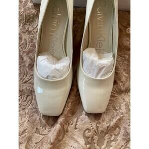 New Calvin Klein white patent leather square toe heels 7.5
