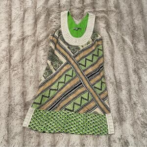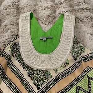 New Calypso St Barth Green Beaded Linen & Silk Dress
