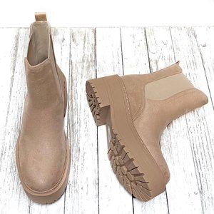New Camel Chelsea Platform Block Heel Combat Ankle Boots Booties