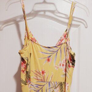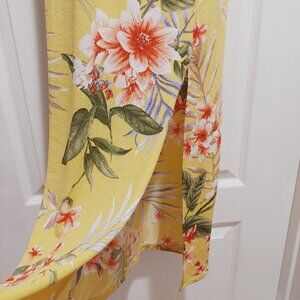 New Camellia Bright Yellow Floral Spaghetti Straps below knee Dress with split
