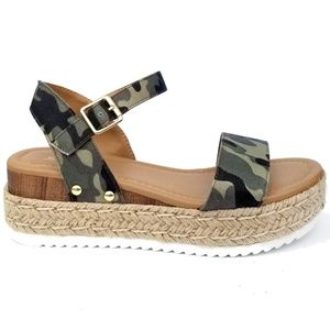 New Camouflage Open Toe Espadrille Flatform Sandal