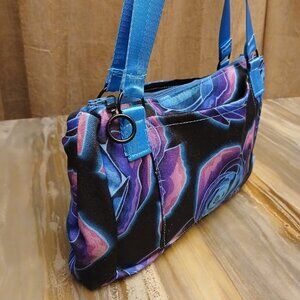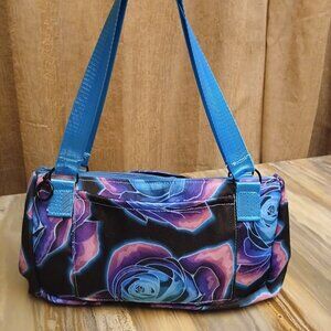New Canvas Ombre Roses Shoulder Bag Purse Blue Pink Purple Black Tote Handbag
