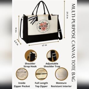 New! Canvas tote large bag with scripture religious Christian flower white black