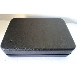 Secure your valuables or small handgun with this new, never-used portable car safe. Includes a key lock and steel security cable for travel or vehicle use. Compact and durable with a textured black finish. Perfect for glove compartments, luggage, or discreet home use.