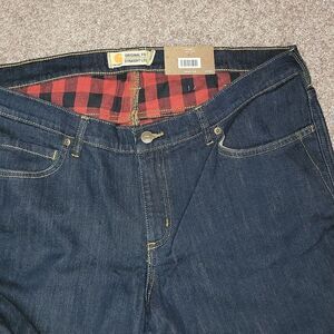New Carhartt Rugged Flex Original Fit Flannel Lined Dark Denim Jean 16W Reg Plus