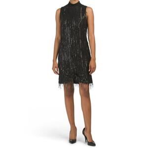 Experience a unique, modern-retro style with the Carla Conti Sequin Fringe Cocktail Dress. Crafted from shimmering sequins, this exquisite dress features a mock-neck and fringe detail that bring an air of sophistication and allure to any evening ensemble. Its dazzling retro-inspired design makes for a timeless investment in luxury fashion that will take you for any special occasion.