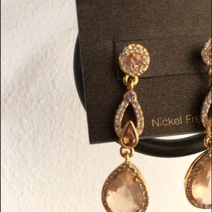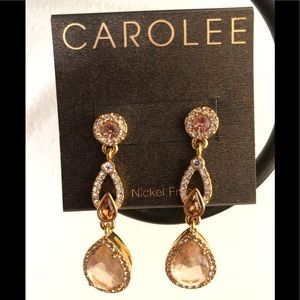 New Carolee Peachy Pink Pave Drop Earrings, Crystals 1.3/4” length NEW
