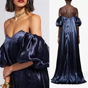 New Caroline Constas Palmer Off The Shoulder Navy Maxi Dress Evening Gown NWT XS