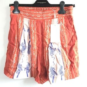 New Caroline Constas Tiger Print High Waist Linen Blend Shorts NWT Medium