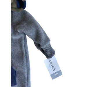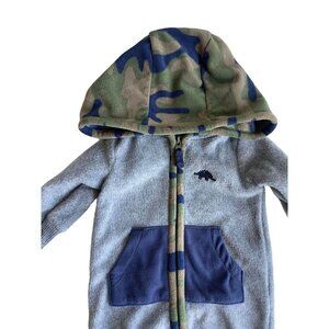New! Carter's Baby Boys' Gray Camo Full Zip Fleece Hooded Playsuit Size 3M