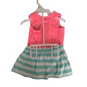 New Carters Girls Infant Baby Size 3 months 2 piece Outfit Set Pink Tank Top Green Striped Skort Skirt
