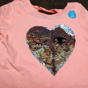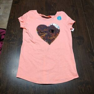New with tags carter's top size girl's 10. It is a peach color has sequin heart flip heart with eyes. Has opening on back at neck.