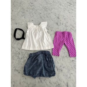Brand new without tags. Never worn. Will bundle for unlimited shipping! Size 3 months top & leggings. Bubble shorts are size 3-6 months