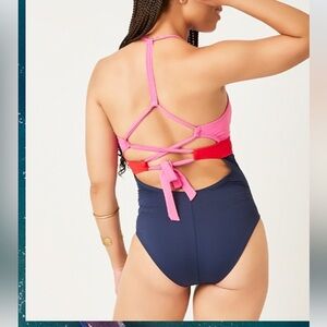 New Carve Designs Dahlia one piece swimsuit fuchsia and navy small and medium DD