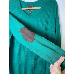 New Cashfeel Merino Wool Sweater Elbow Patch Emerald Green Pullover Plus Sz 2X