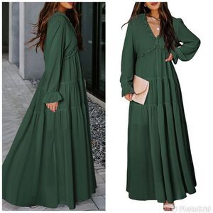 New Casual Maxi Boho Long Sleeve V-Neck Ruffle Elegant Cocktail Swing Dr…