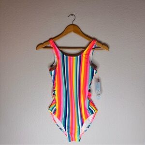 New Cat & Jack Girls XL Multi Colored Striped Swimsuit Bathing Suit