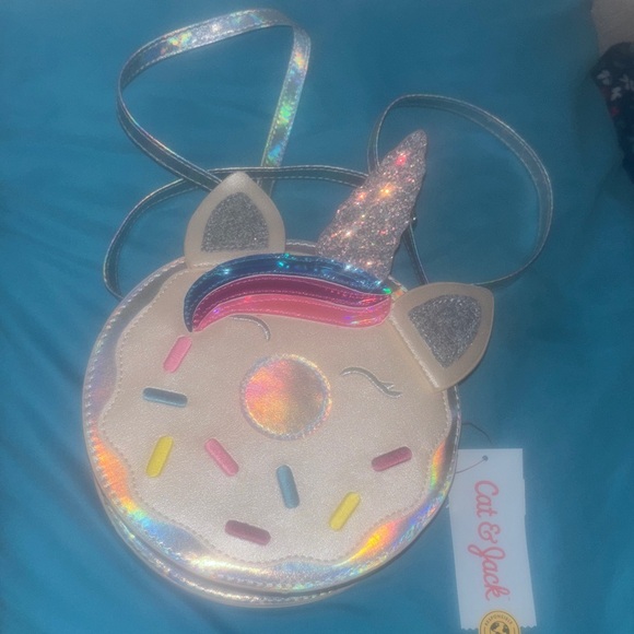 New. Cat & Jack Glittery Unicorn Donut Bag - Silver and Pink
