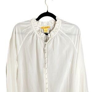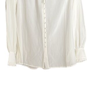 New Catherine Malandrino Ruffle Neck Button Front Blouse Ivory Large