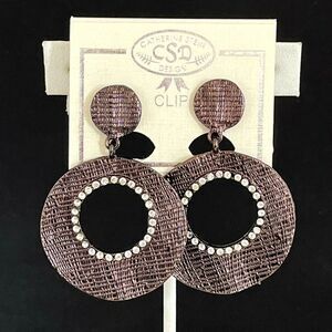 New Catherine Stein Designer Earrings Clear Crystal Accents Clip On 6H