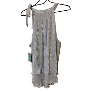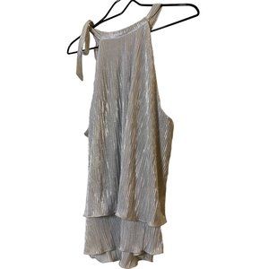New Cece Metallic Silver layered tank top with tie neck Sz L