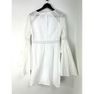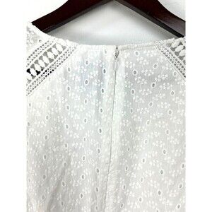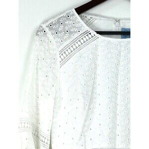New Cece Women Sz 8 White Dress Eyelet Bell Ruffle Sleeve Crochet Lace A Line H4