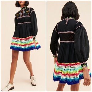 Multicolored mini dress w/ crochet and embroidered detailing throughout