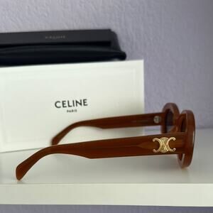 These Celine sunglasses feature a sophisticated brown frame, embodying timeless elegance. Accompanied by a sleek black case and original branded box, they are the perfect accessory for a refined look.
