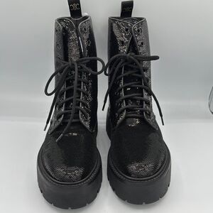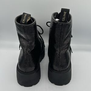 New Celine BULKY Sequined Strap-Up Combat Boot Size 39 US Size 9