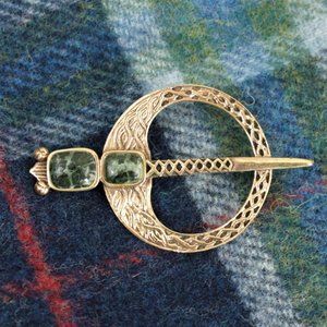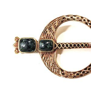 New Celtic Connemara Marble Bronze Tara Brooch Pin (Ireland)